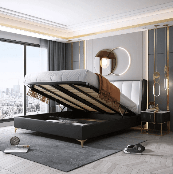 Bed With Storage In Leatherette