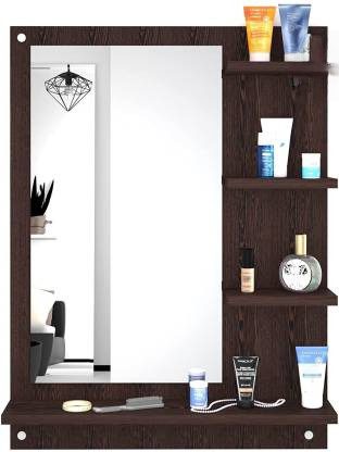 • Mavis Dressing Wall Mirror with Shelves/Wall Hanging Dressing Mirrors with Shelf for Living Room Bedroom/Wall Mounted Dressing Mirror for Wall Decor (Wenge)