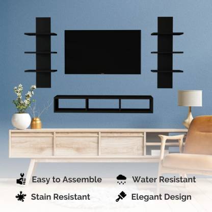 Wood TV Entertainment Unit (Finish Color – Black, DIY(Do-It-Yourself))