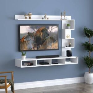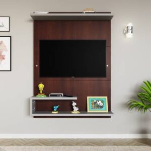 Wooden Wall Mounted TV Entertainment Unit/TV Stand/TV Cabinet/Set-Top Box Stand Engineered Wood TV Entertainment Unit (Finish Color – Grey and White, DIY(Do-It-Yourself))