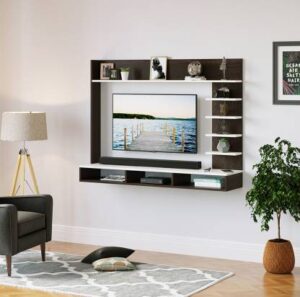 Wood TV Entertainment Unit (Finish Color – Flowery Wenge & Frosty White, DIY(Do-It-Yourself)