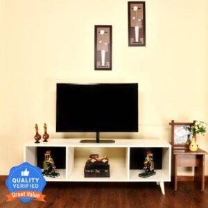 Wood TV Entertainment Unit (Finish Color – White, DIY(Do-It-Yourself)